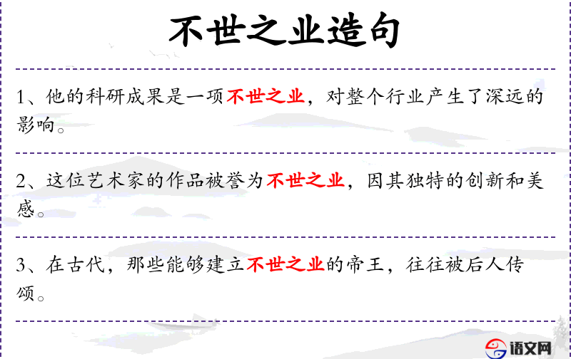 1. 【不世之业】 - 不世:非常、非凡。稀世罕有的功业。