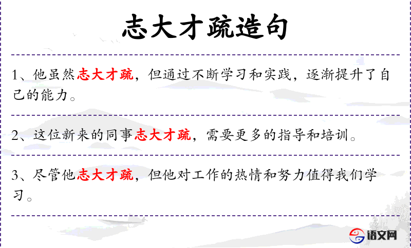 “志大才疏”是一个成语,源自**传统文化,用来形容那些有远大志向但实际能力不足的人。这个成语的使用反映了汉语中对平衡志向与能力的重视。