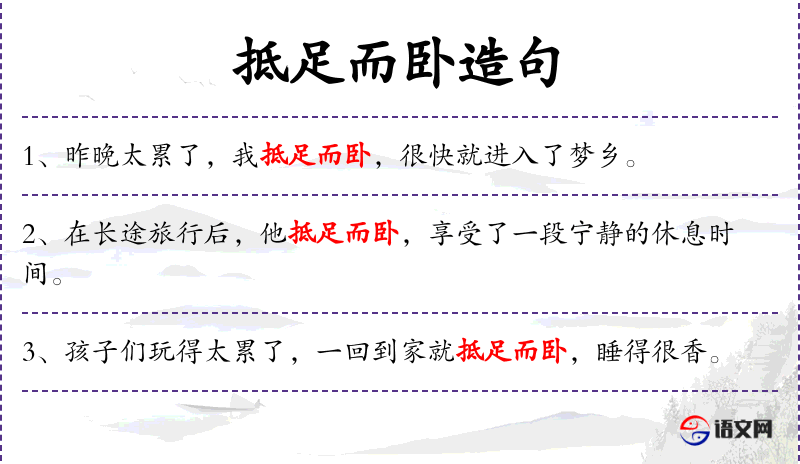句子:“长途跋涉后,探险队员们抵足而卧,为第二天的行程养精蓄锐。”