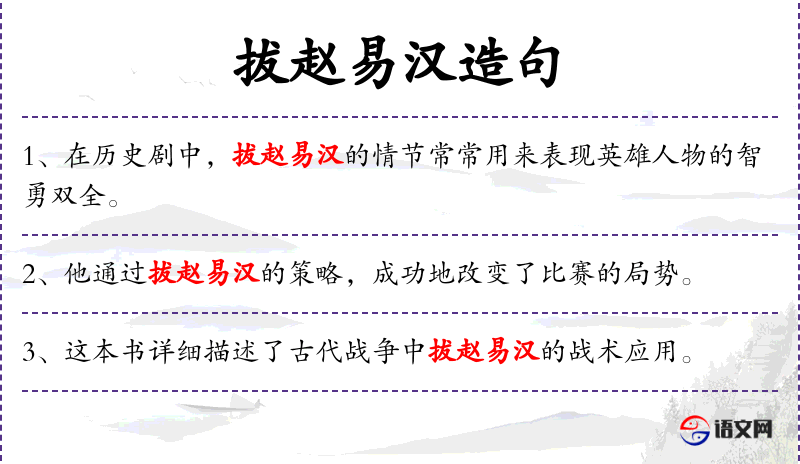 - “若想使文章生动有趣,不妨尝试运用拔赵易汉的方法。”