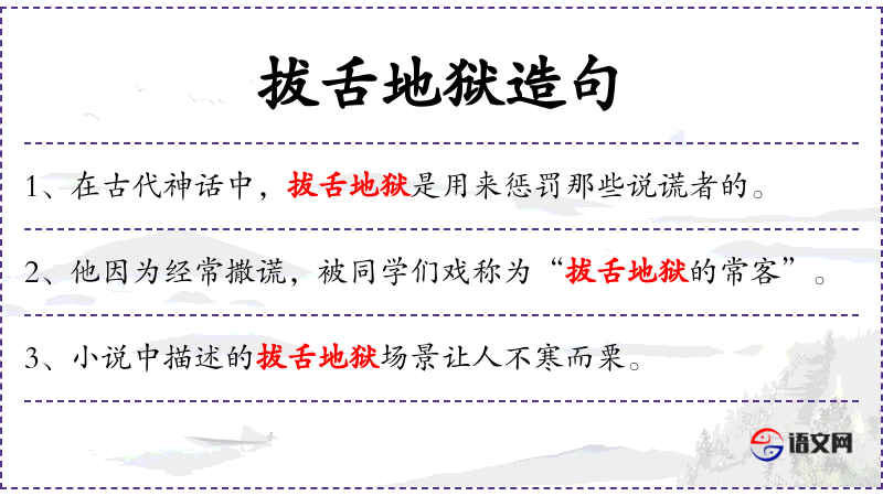- 结果从句:就会想象自己被送到拔舌地狱
