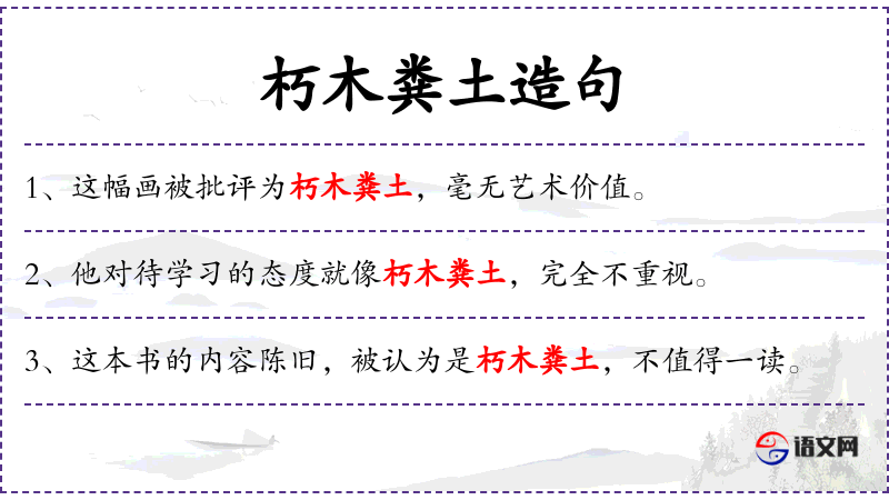 3. 【朽木粪土】 - 朽木:烂木头;粪土:脏土臭泥。比喻不堪造就、对社会没有用处的人。