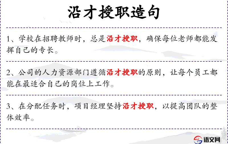 1. 【沿才授职】 根据人的才能委以相称的职务。