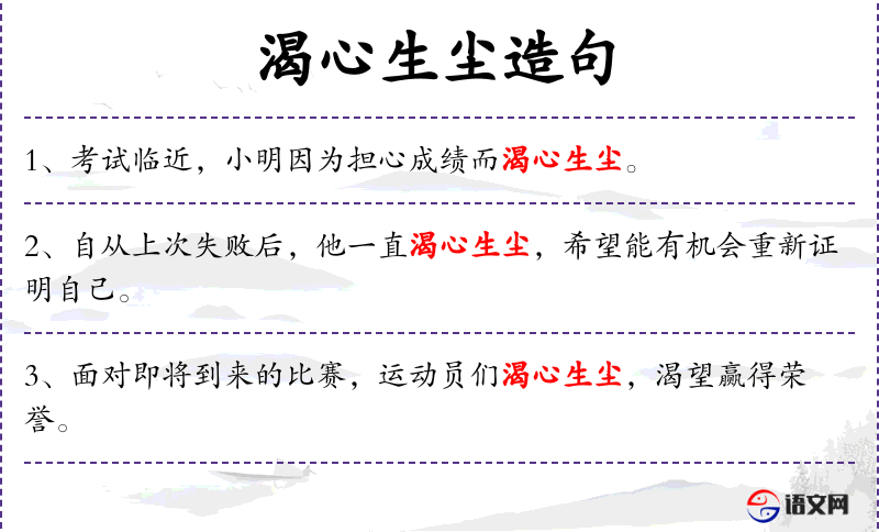 4. 【渴心生尘】 渴:迫切。形容非常想念。
