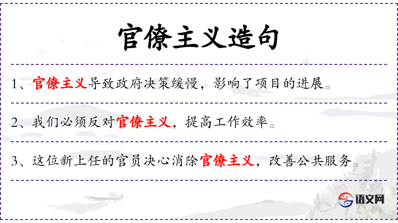 - 不同句式表达:“官僚主义不仅导致时间浪费,还导致资源消耗。”