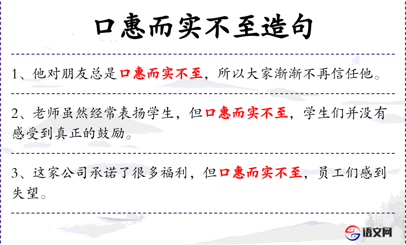 - 口惠而实不至:表面上说得好听,实际上并不兑现。