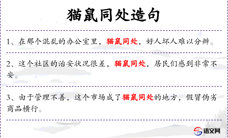 5. 【猫鼠同处】 比喻官吏失职,包庇下属干坏事。也比喻上下狼狈为奸。同“猫鼠同眠”。