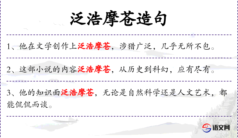 1. 【泛浩摩苍】 - 泛海摩天。形容文词博大高深。