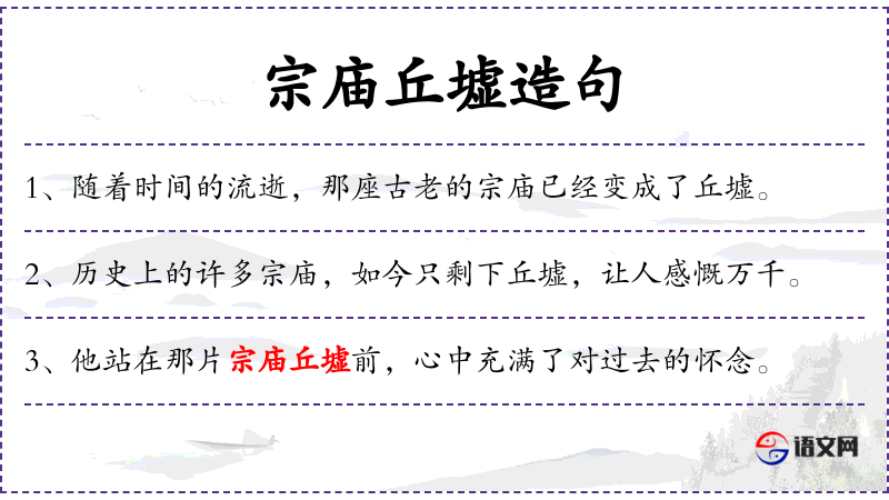 句子:“历史上的许多宗庙,如今只剩下丘墟,让人感慨万千。”
