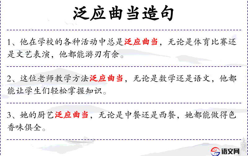 1. 【泛应曲当】 - 指广泛适应,无不恰当。