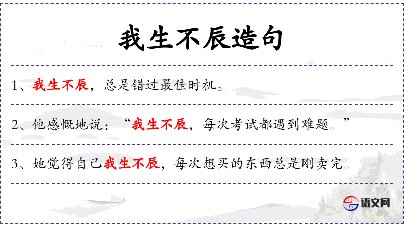 - 谓语:“生不辰”和“总是错过”,前者表示出生时辰不佳,后者表示经常性地错过。