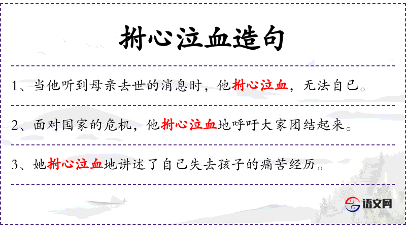 - 拊心泣血:形容极度悲痛,心痛到极点。