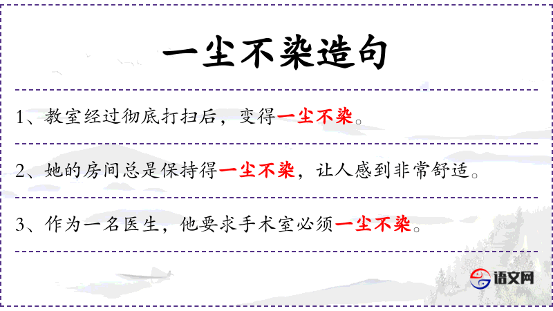 - 宾语:一尘不染