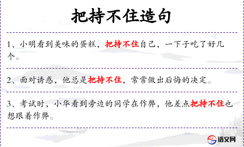1. 【把持不住】 把:掌握。指意志比较薄弱,把握或控制不住自己