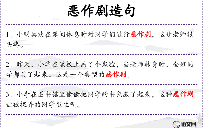 - 换:动词,表示交换或替换。 *. 恶作剧:名词,指调皮或恶意的玩笑。