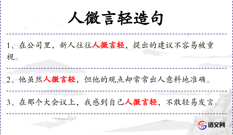 1. 【人微言轻】 地位低,说话不受人重视。