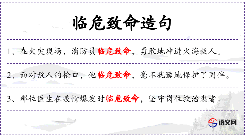 - 临危致命:形容在危险情况下毫不畏惧,甚至可能牺牲生命。
