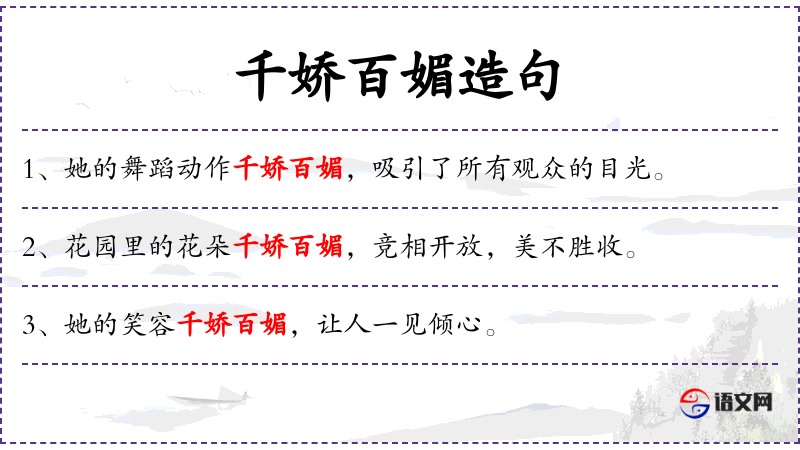 - 千娇百媚:形容花朵非常美丽,多姿多彩。