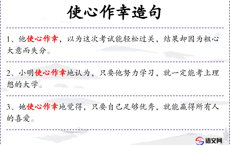 - 使心作幸地:这个短语可能是“心满意足地”或“满怀希望地”的误用或方言表达。标准汉语中通常使用“心满意足地”或“满怀希望地”。