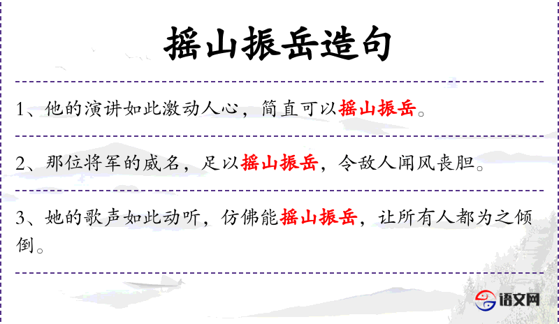 - 摇山振岳:这个成语源自**古代,比喻力量极大,能够撼动稳固的事物。