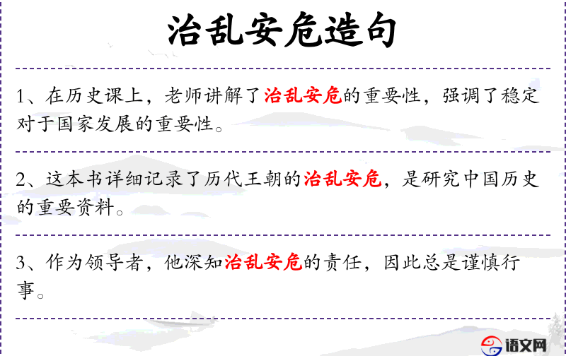 1. 【治乱安危】 治:治理;安:安定。治理乱世,安定危局。