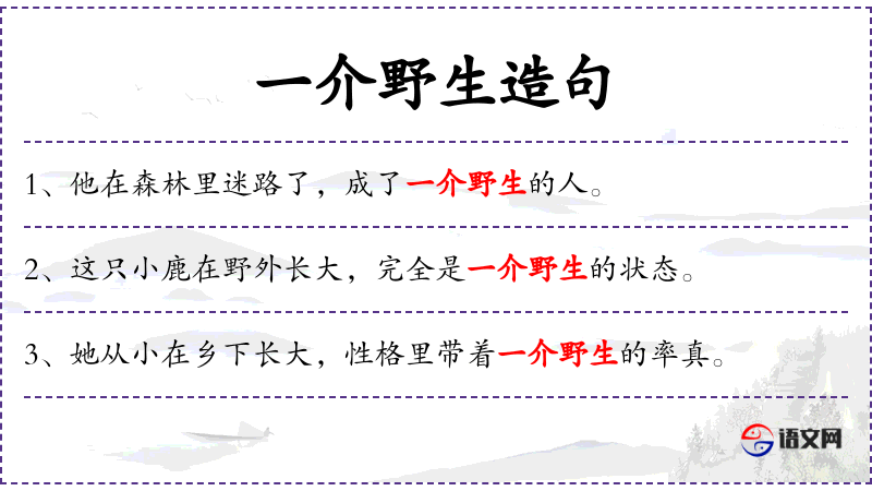 句子:“这片森林里的动物大多是一介野生的,没有人类的干扰。”