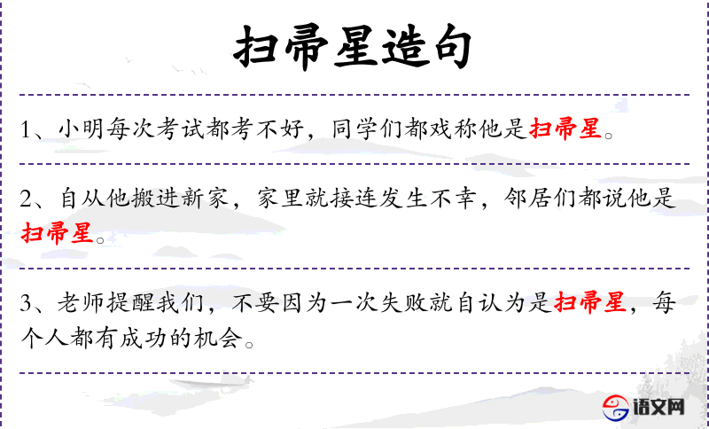 - 扫帚星:在**文化中,扫帚星通常指带来坏运气的人。