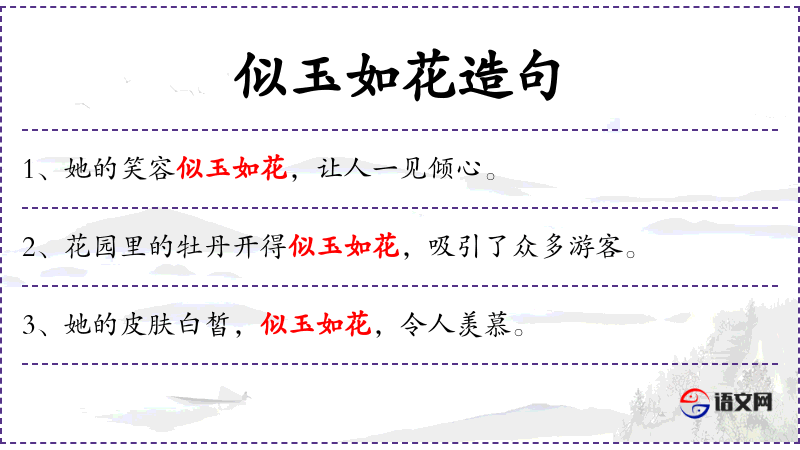 - 文化背景:**文化中常用“似玉如花”来形容美好事物,体现了对美的追求和赞美。