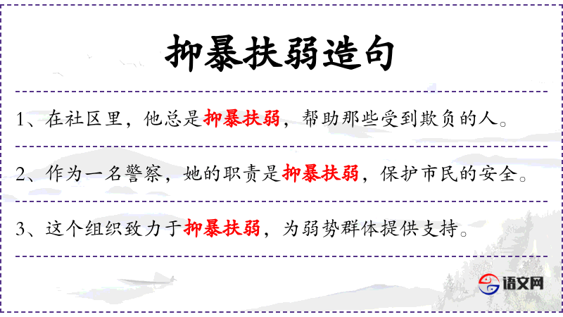 - 抑暴扶弱:抑制暴力,帮助弱者。