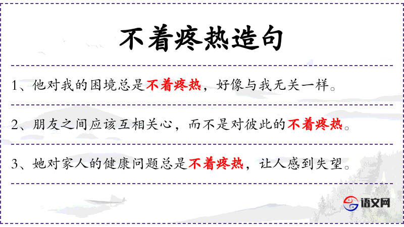 - 不着疼热:这是一个成语,意思是漠不关心,不放在心上。