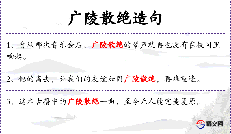 - 状语:“仿佛广陵散绝的旋律在耳边回响”