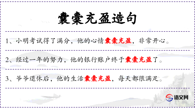 “囊橐充盈”是一个成语,源自古代,用来形容口袋里装满了东西,特别是指金钱。这个成语反映了人对于财富积累的重视。