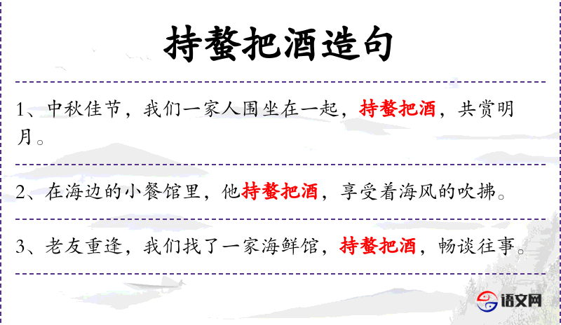 “持螯把酒”是一个富有文化特色的成语,源自古代文人饮酒作诗的情景。这个成语体现了中华文化中对饮酒文化的重视,以及朋友间相聚的欢乐氛围。