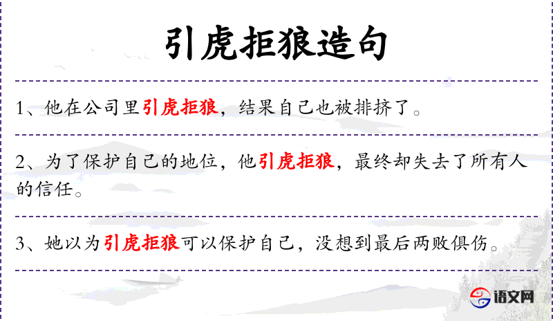 “引虎拒狼”这个成语源自传统文化,反映了人对于策略和后果的深刻理解。这个成语提醒人们在采取行动时要考虑长远后果,避免因小失大。