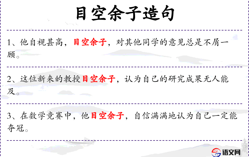 1. 【目空余子】 - 眼里没有别人。形容骄傲自大,看不起人。同“目中无人”。