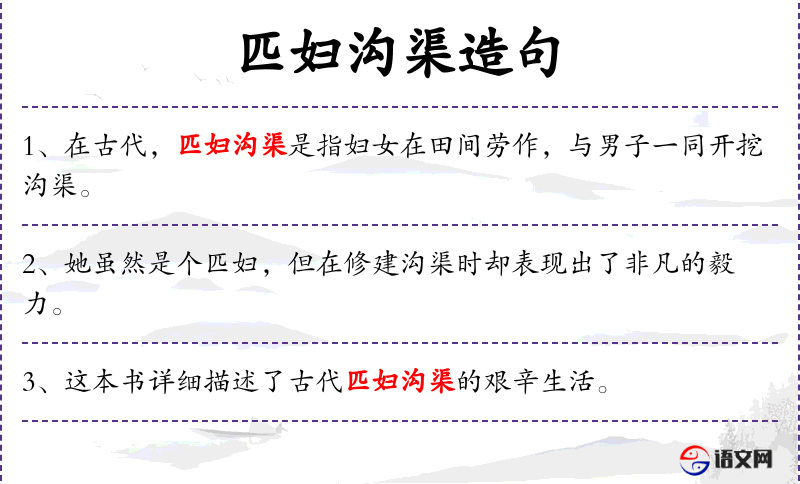 - 宾语:古代匹妇沟渠的艰辛生活