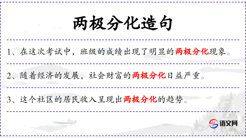 - 两极分化:极端化、分化