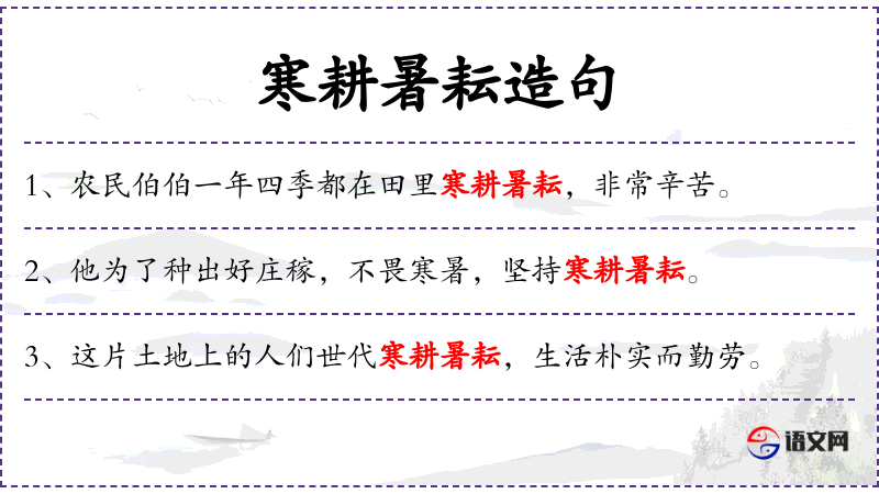句子:“农民伯伯一年四季都在田里寒耕暑耘,非常辛苦。”