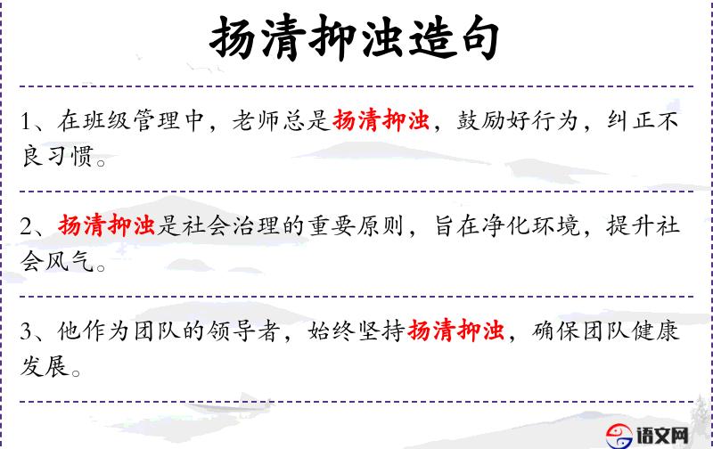 - “扬清抑浊”是**传统文化中的一个成语,源自道家思想,强调区分善恶、好坏。