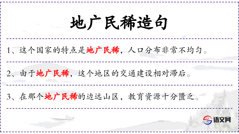 - 宾语:地广民稀,人口分布非常不均匀
