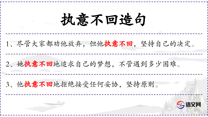 - 执意:坚持自己的意愿,不轻易改变。