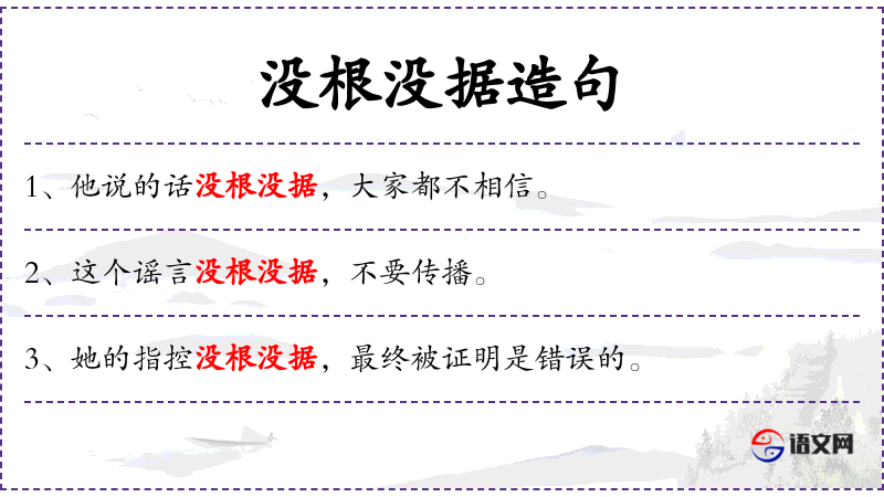 2. 【没根没据】 - 指没有依据的事物或论点。