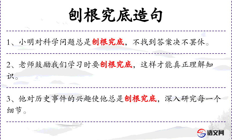 句子:“做研究时,刨根究底可以帮助我们发现问题的本质。”
