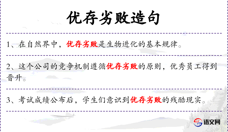 - 优存劣败:指优秀者生存,劣质者被淘汰的原则。