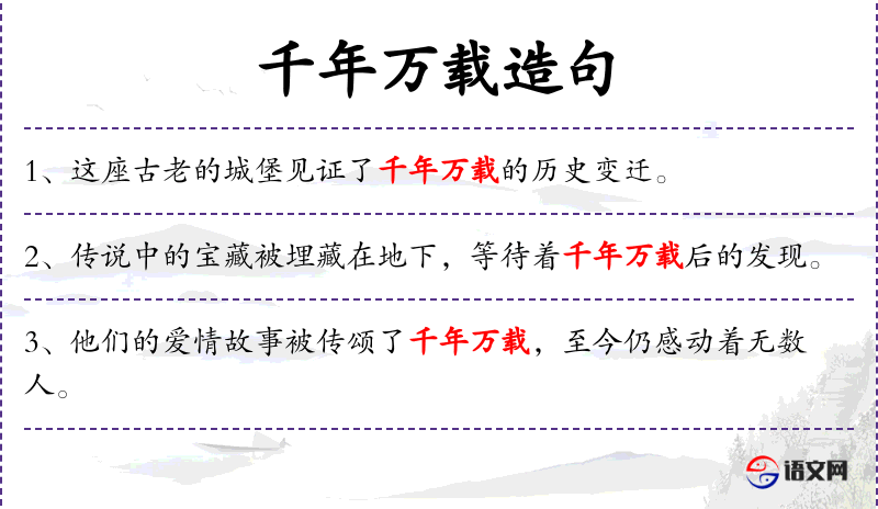 - 成语典故:“千年万载”常用于形容时间极其长久,如“千年万载的传承”。