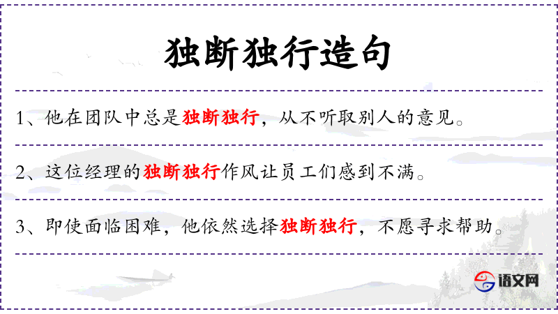 4. 【独断独行】 - 行事专断,不考虑别人的意见。形容作风不民主。