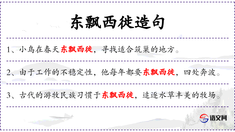 - 宾语:“东飘西徙”