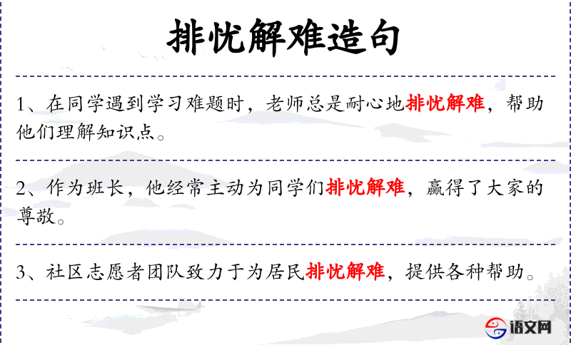 - 排忧解难:成语,意为帮助他人解决困难和烦恼。