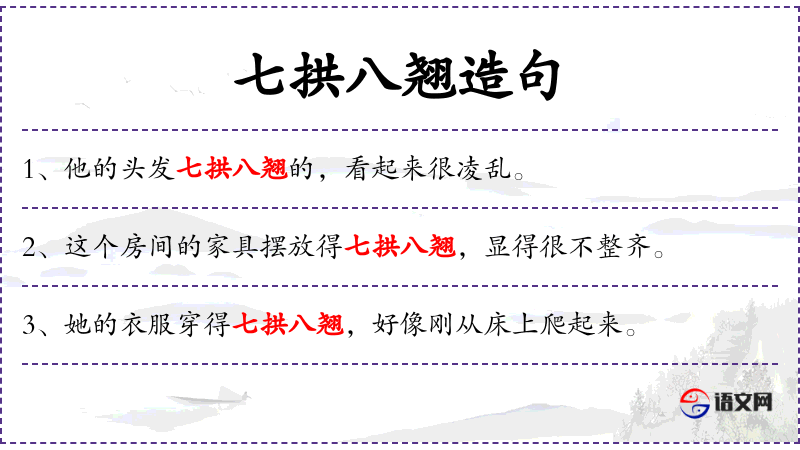 句子中的“七拱八翘”是一种形象的描述,反映了**文化中对整洁和仪容的重视。这种描述可能在特定的文化背景下更为常见。