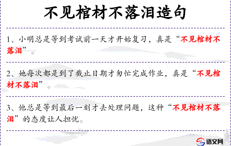 1. 【不见棺材不落泪】 - 比喻不到彻底失败的时候不肯罢休。